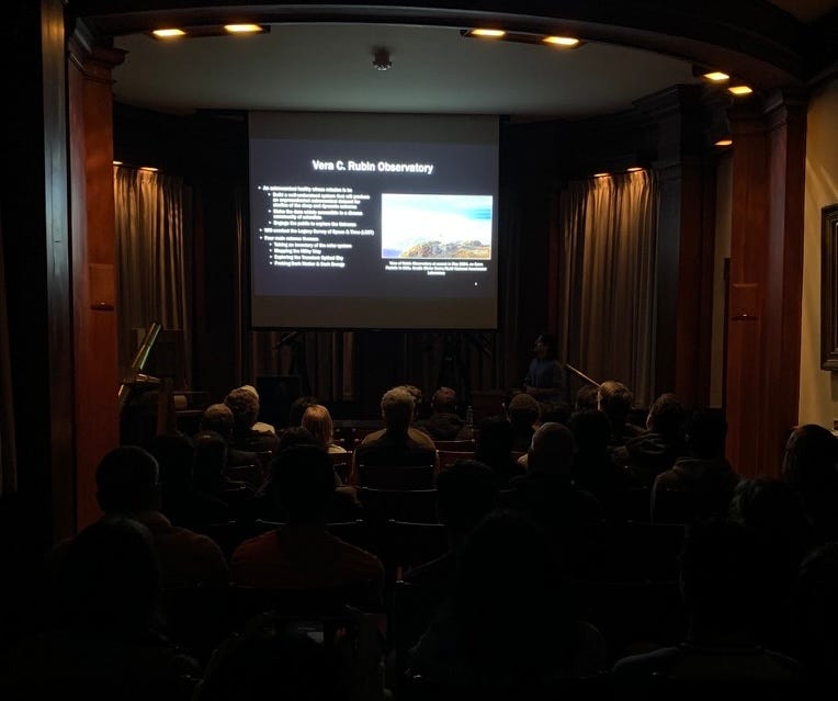 Christopher Hernández, a physics Ph.D. candidate at the University of Pittsburgh, gave a fascinating talk on Characterizing the Transient Universe with the Pitt-Google Alert Broker. He walked us through how astronomers use machine learning and cloud infrastructure to process massive alert streams from modern sky surveys, helping researchers identify and study transient cosmic events such as Type Ia supernovae in real time.